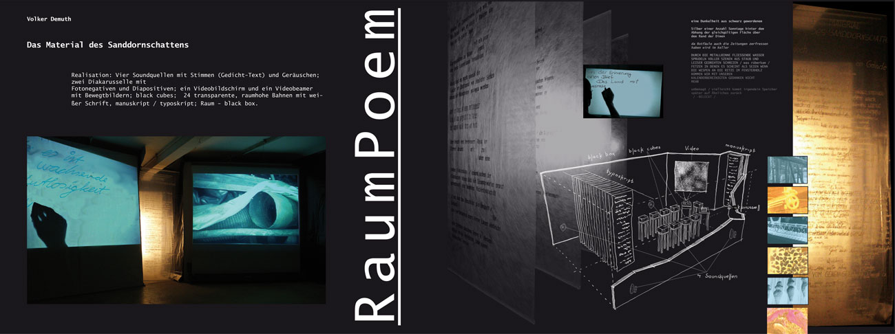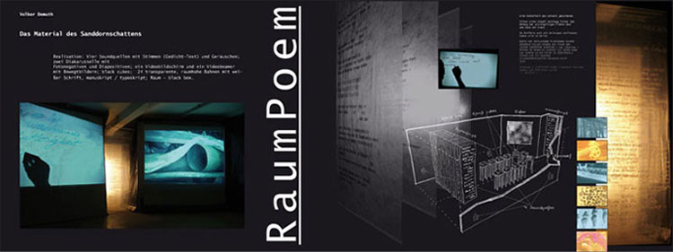 RaumPoem bezeichnet das Experiment einer hybriden Sprachinstallation. Ausgehend von der zwölfteiligen